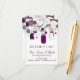 Whimsical illustrations of purple mason jars and hearts strings hanging on a tree with two love birds surrounded by variety of flowers. It is perfect for summer, spring and outdoor weddings.