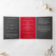 This grey and red tri-fold brochure has a modern, yet professional look to it, with a clean and easy to read layout. It has ample room for personalised information about your company's strategy, success, history, and anything else you would like perspective clients to know. Include photos to create a personal feel. Edit text, colours, and logo to match your company's branding.