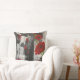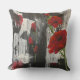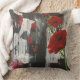 Grey and Red Poppy Rose Throw Pillow