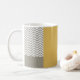 A modern and stylish stainless steel aluminium coloured grey and white chevron pattern commemorative wedding favour mug with misted yellow and stainless steel colour block colour scheme. Personalise this preppy and chic zigzag wedding anniversary mug in line with popular muted toned colour trends by adding the name of the couple, their wedding date, and a special wedding wish. Love this design, but want the grey and yellow in a different colour? Just visit my store and make your request via the contact seller button at the bottom of the page.