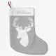 Grey And White Deer Head With Custom Name Small Christmas Stocking