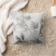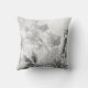 Modern floral throw pillow features a stunning botanical print in a black and white colour palette with grey tones. This beautiful floral composition has layers of garden flowers in a shades of grey on a white background. This elegant botanical print features a layered organic design of blooming garden flowers with a faint abstract overlay, creating highlights and shadows that give depth and perspective in the overall design.