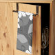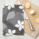 Grey and White Flowers. Floral Pattern. Tea Towel