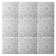 This geometric grey and white tile is just the thing for your kitchen Backsplash. You can also use it in the bathroom. The design is a grey emedallion. The background is white. From Oregon Tile maker Fay Jones Day.