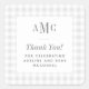 The perfect finishing touch for a baby shower or spring time Southern garden party favour, this pale grey and white gingham patterned sticker has an easy to edit three-letter monogram and custom message text to tell your guests how much you appreciate them.