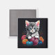 Grey and White Kitten with Yarn Magnet