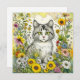 Grey and White Kitty Cat Sitting in Flowers Hello