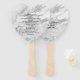 These fans were exactly as pictured. The quality is great. Perfect favor for a wedding!...I will make assembly a little easier by using a hot glue gun and finish them off with a ribbon. Beautifully printed. Crisp and clear text.