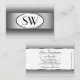 Grey and White Ombre Initials Silver Oval Frame Business Card