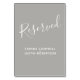 Simple white out script text table reserved card. Simple modern double-sided grey table number cards. Other colours and matching items available. If you have any questions or need help or other wedding items in this style please contact me. Design by www.mylittleedenweddings.com