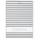 Grey and white striped pattern clipboard featuring a personalised name print on front and back. For matching grey striped items and more colour options check out the full collection below and visit Dots & Stripes Pattern Design Studio by Maggie B for more personalised stationery.