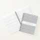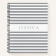 Spiral notebook featuring a personalised name print on a minimalist grey and white striped pattern.