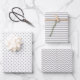 A wrapping paper sheet set built with polka dot, striped and chevron patterns in grey and white. Customise the grey background colour, pattern size among other options.