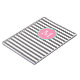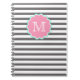 NewParkLane - Monogram Notebook, with an abstract pattern of grey and white stripes, and a teal and hot pink badge for your monogram or personalised text.