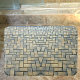 This grey and mustard or yellow brick bath mat is an urban industrial modern design. It is part of a coordinating bathroom design collection.