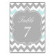 Grey Aqua Chevron Table Number Card