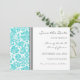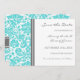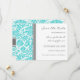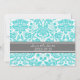 Wedding save the date announcement card with elegant and contemporary bright turquoise sky blue, dark charcoal grey and white classic and vintage floral damask pattern. Customisable with your wedding details, available in a wide range of matching wedding products. Contact us to request a colour change or a custom product.