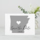 Custom colour grey Arkansas map shape with a save the date design for people getting married at a wedding venue in Little Rock AR.
