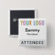 Easily personalise our square attendee name badge with your event logo, attendee name, or other custom text. It attaches with a safety pin back. Designed in light grey and other colours (all colours are customisable). Our square buttons are 2 inch x 2 inch. Made in USA. No minimum order quantity and no setup fee.