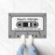 Grey vintage audio cassette tape. Vector icon with customisable colours. Custom text.