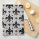 Grey Background Fleur-de-lis Pattern Design Tea Towel