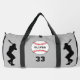 Grey Baseball Ball Player Silhouette Name Number Duffle Bag