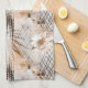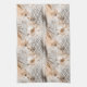 Grey, beige tropical pattern. Palm leaves, orchid and hibiscus on a light background with polka dots and a cage. Modern fashionable abstract pattern.