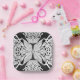 Grey Black And White Butterfly Winged Abstract Paper Plate