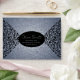 This envelope design features a deep grey background beautifully accented with an ornate black damask pattern. The intricate floral and heart motifs create a luxurious and dramatic effect, while the dark tones bring out a sense of sophistication and mystery. The central area is kept clean for customisable text, framed elegantly by the rich ornamental design.
