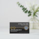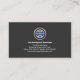 An upper grey layer is demarcated from its lower black piece by a faux gold icon border. Riding this gold line is a faux gold global logo you can use. At the top of the logo is your prestigious name and job title. Southwards towards the base of the card is the oversize business name followed by the contact details and a slogan to publicise your services. Change the caption remarks to the slogan to suit your own needs.