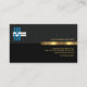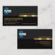 Above the gold stripe is the business name with a creative chain link logo you can use, at the top left corner. The black layer below has your prestigious name, job title and the contact details. A slogan option to publicise your services is at the lower right corner. You can change the caption remarks to suit your service needs.