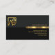 An upper dark grey layer is demarcated from a lower black piece by a faux gold stripe. Just above the gold stripe is the business name alongside a faux gold landscape logo at the opposite end. The black layer below houses your prestigious name, job title and the contact details. A slogan option to advertise your services is available in the lower right corner.