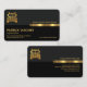 A retro grey and black column layered design that is accentuated by a faux gold stripe. Riding this gold piece of success is your business name with a gold semi truck logo you can use near the left side of the card. Below this logo lies your prestigious name, job title and contact details. A slogan to advertise your services is available towards the right.