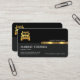 A retro grey and black columned design that is accentuated by a faux gold stripe near the centre. Here lies your business name with a gold semi truck logo which you can use in the opposite direction. Below this gold logo lies your prestigious name, job title and contact details. A slogan to advertise your services is available in the lower right corner.