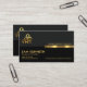 A simple retro grey and black columned design that is accentuated by a faux gold stripe near the center of the card. At the top grey layer you have a gold manpower logo at the left wall with the business name riding the faux gold tab at the right side of the card. Your prestigious name, job title and contact details are housed in the black layer underneath. A slogan to advertise your services is available near the lower right corner.