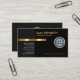 An exquisite grey and black layered design is accentuated by a faux gold stripe near the top. Above the gold stripe is your prestigious name and the job title with a gold global logo you can use. At the grey layer on the left, card details are located at the white lines with a slogan caption near the lower right corner of the card.