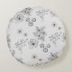 Grey Black Retro Y2K Hippie Flower Pattern Round Cushion
