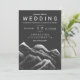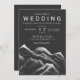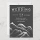 Grey black white watercolor mountains wedding invitation