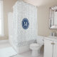 Grey Blue Damask Monogram Shower Curtain