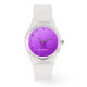 Purple geometric mesh pattern Monogram Wrist Watch. Monogrammed Personalised gift watch accessory for her with custom initial and name.