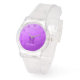 I only have one complaint. I ordered the watch with clear case and strap, and what was sent was white case and strap. I'm going to keep it because 1) it looks very nice in white, and 2) it would take too long to get a replacement made and sent in time for my occasion. Aside from the mix up with the color, the watch does look very good in white. The purple dial is actually sparkly which did not show in the online images. That was a nice surprise. If you like Swatch watches this is very similar to those. It's 33.6mm in diameter, 10.5mm thick, and 40.6mm lug to lug. Stainless steel case back says 3ATM/30m WR, so no swimming or showering or submerging this one. If you like Woodstock, this is a great choice.