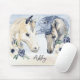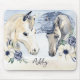 Grey blue horse with flowers personalised name mouse pad, a lovely gift for horse equestrian lovers.