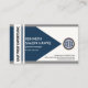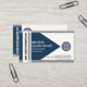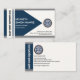 Overleaf, the business name is inverted at the left wall in a blue stripe column. Beside it is the gold logo followed by your prestigious name, contact details and another slogan option to advertise your services.