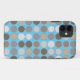 A colourful modern iphone 11 case w/my original abstract art, vector art & design. This iphone 11 case has a modern geometric pattern of dots/circles with various shades of grey, brown, with a light turquoise blue background. Nice soothing neutral colour palette with blues, browns and greys with a contemporary style and design.