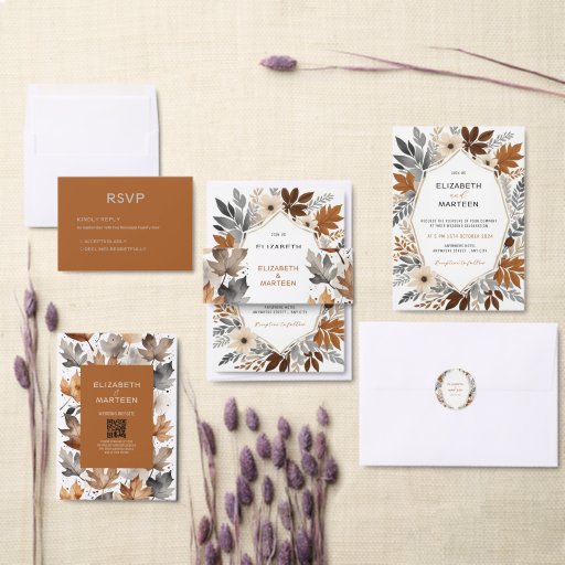 Grey Brown Maple Leaves Autumn Wedding Coaster