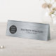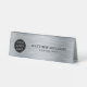 Simple grey brushed metal with a black logo sign