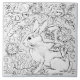 Grey Bunny Rabbit Bird Floral Drawing Artistic Ceramic Tile