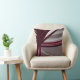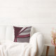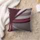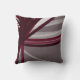 Modern throw pillow features an artistic abstract ribbon design with shades of burgundy and grey with white accents on a grey background. This abstract composition is built on combinations of repeated ribbons, which are overlapped and interlaced to form an interesting abstract pattern. The grey, burgundy, white and wine coloured accents are layered and and interspersed to give perspective and depth; design elements that compliment the lighter grey background.