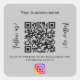 Grey background colour. Personalise and add your business name, your own qr code to your Instagram account and a text. Black text. With the text x2: Follow us!