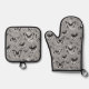 Grey Butterfly Pattern Oven Mitt & Pot Holder Set